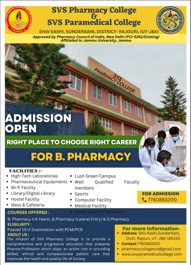 is an undergraduate program in the field of pharmacy. The degree is the basic prerequisite for registration to practice as a pharmacist in India. [...]